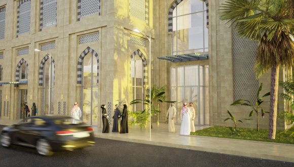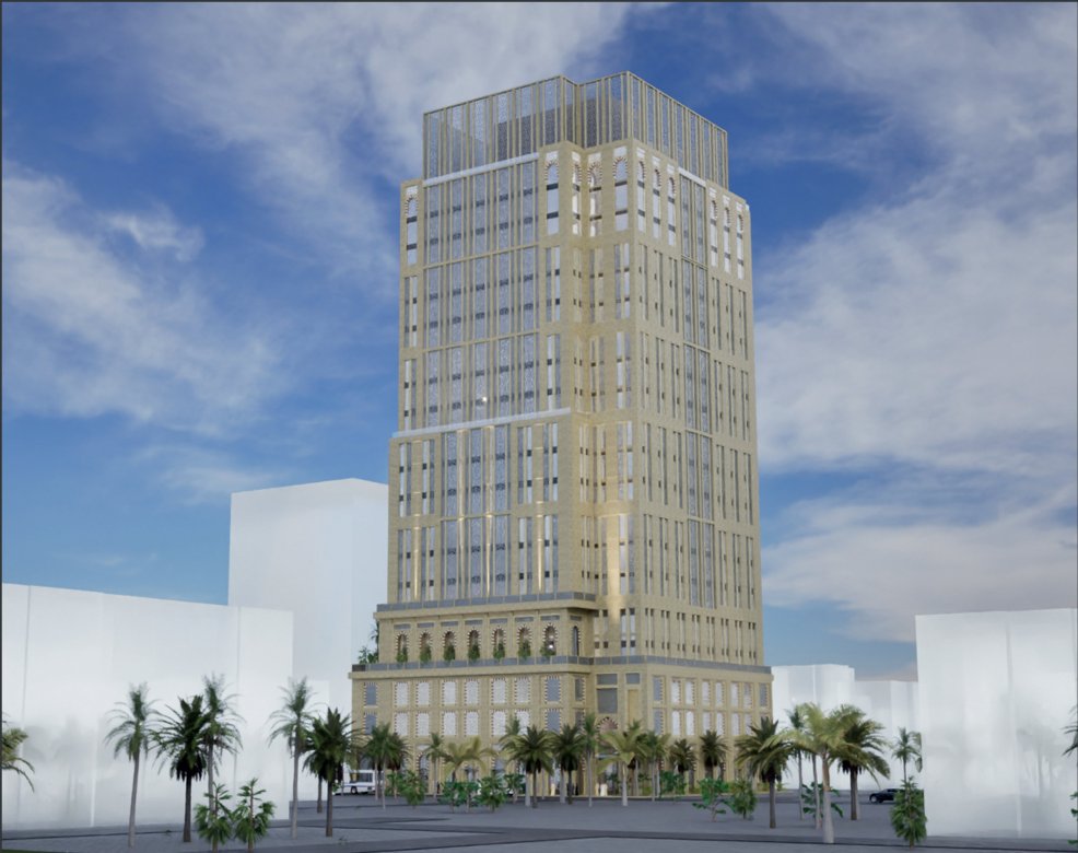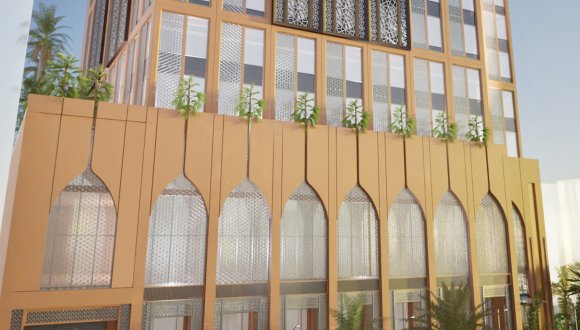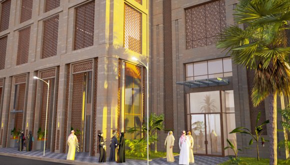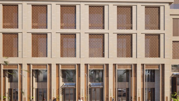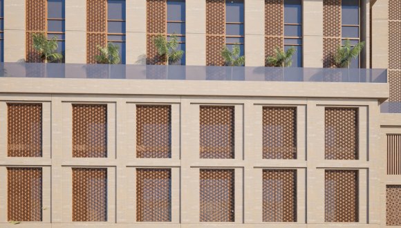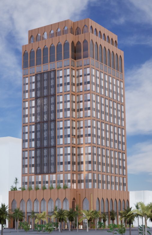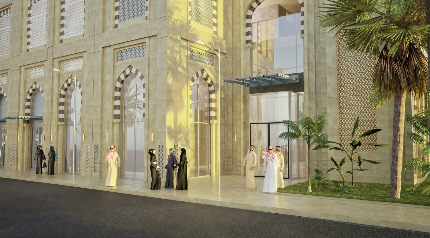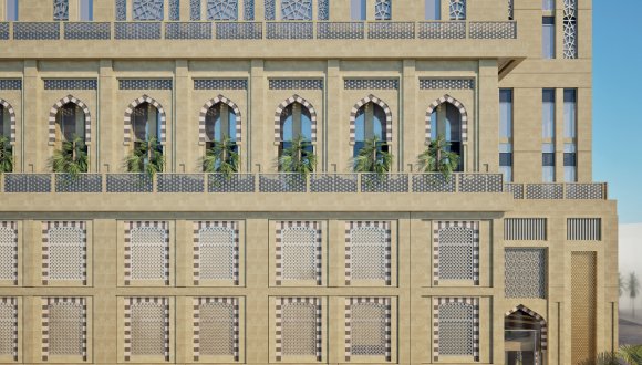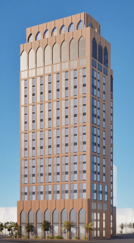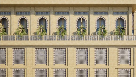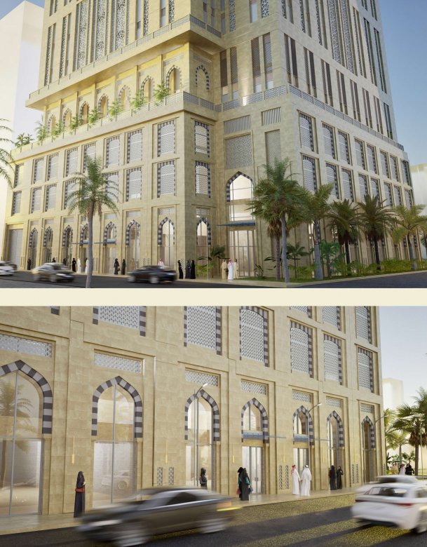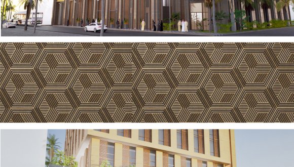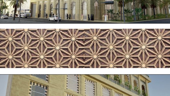 An alternative façade concept has been developed in full alignment with the MASAR project’s architectural and urban design framework. This concept emphasizes straight-formed, linear façade elements that reinforce the build-to-line principle, creating a strong and disciplined street presence while retaining flexibility for architectural expression. The façade articulation distinctly separates the building’s three primary elements—Base, Body, and Crown—utilizing varying levels of detailing in accordance with MASAR’s ‘level of play’ guidelines. The Base features pronounced straight-edged detailing to foster active human interaction at the pedestrian level, enhancing the streetscape with a clear and engaging linear form. The Body incorporates consistent straight façade planes with moderate articulation, providing visual rhythm and architectural interest that responds appropriately to its medium visibility. The Crown executes a refined, minimalist treatment with straight-line elements, offering a coherent and restrained termination to the building’s silhouette. Incorporation of traditional Islamic geometric patterns is achieved through subtle yet precise linear motifs integrated within the straight façade surfaces, ensuring cultural continuity and enriching the architectural narrative. The solid-to-void ratio is carefully balanced to prevent excessive glazing, optimizing daylight while minimizing glare and thermal gain in line with MASAR guidelines. From a massing perspective, the building expresses its volumes through well-proportioned, straight-edged Base, Body, and Crown components. Linear stepping and setbacks are employed to maintain human scale and support a pedestrian-friendly environment, while reinforcing a cohesive urban edge consistent with the district’s massing strategy. This alternative straight-formed façade concept offers a modern reinterpretation of traditional architectural elements, delivering clarity, order, and cultural resonance in harmony with the MASAR project’s vision and facade development manual.